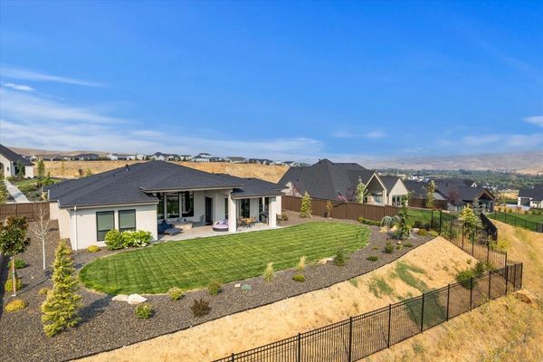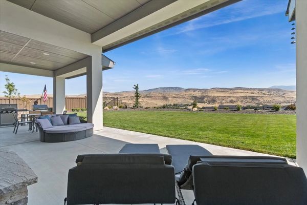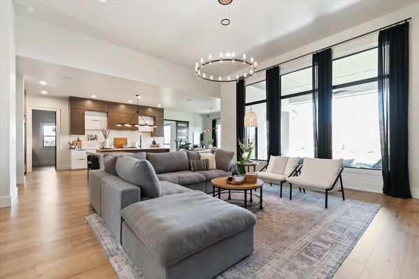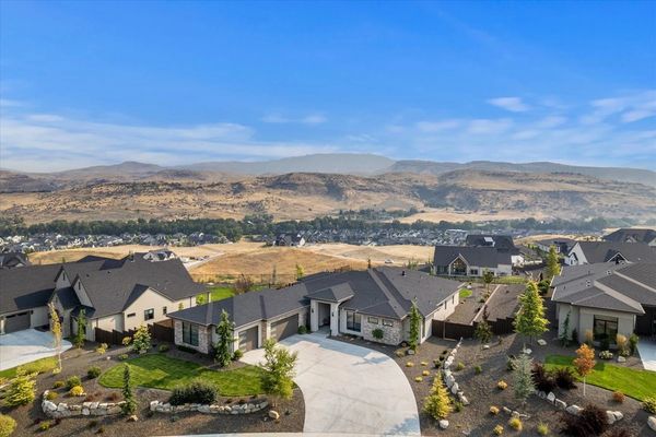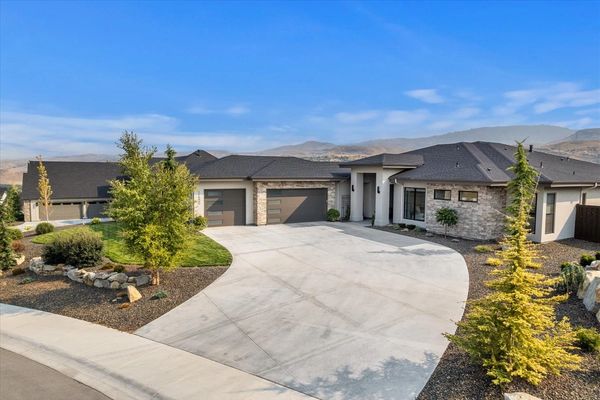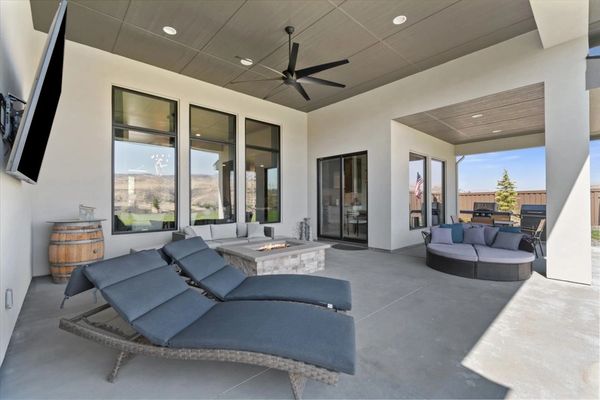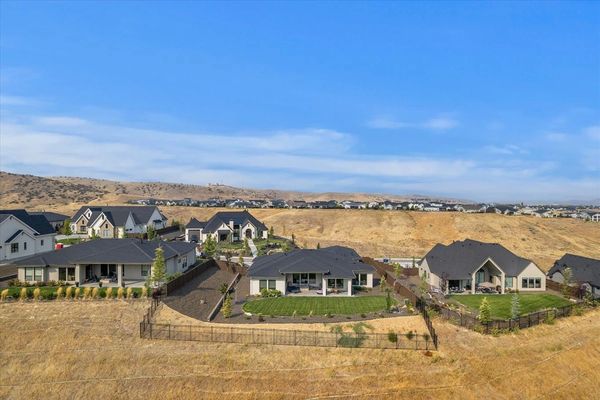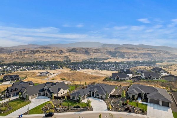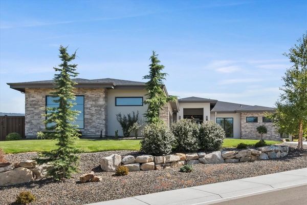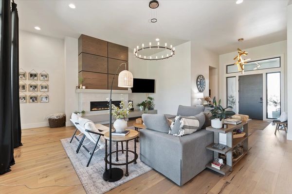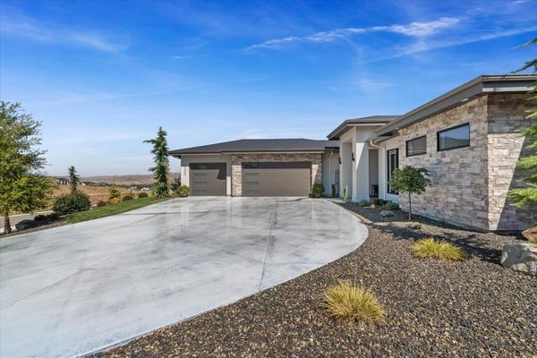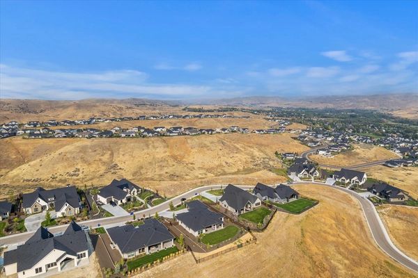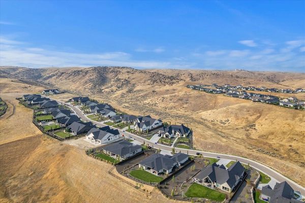Perched in the scenic foothills of Cartwright Ranch, this contemporary home showcases architectural details that shine with bold, asymmetrical lines, beautifully softened by natural stone and wood accents. With 3 bedrooms, 2.5 baths, an office and a versatile flex room, the thoughtful design complements modern living. The great room, with soaring volume ceilings, frames breathtaking views of the Boise foothills. A gourmet kitchen showcases an oversized island, Thermador appliances and a Butler’s pantry. The primary suite is a retreat with designer feature walls, hardwood flooring and a spa-inspired ensuite complete with heated floors. The climate-controlled garage impresses with epoxy floors, built-in cabinetry, a heater, motorized blinds and a 220V outlet for EV or workshop use. Outside, enjoy a covered patio featuring a fan and fireplace, surrounded by professional landscaping with fruit trees, blueberry bushes, water features and an outdoor shed—all with unobstructed foothill views and no backyard neighbors, ever.