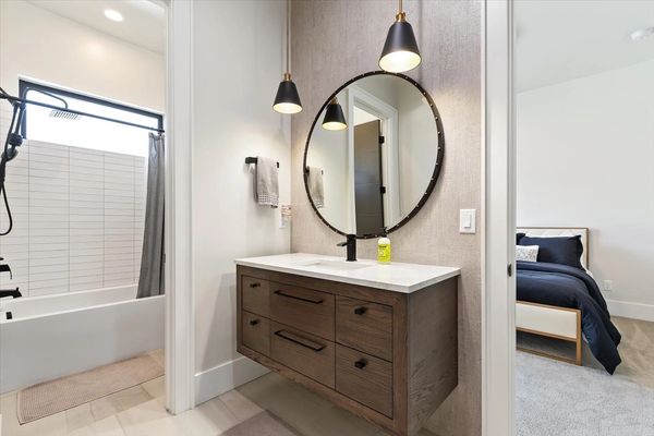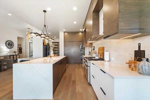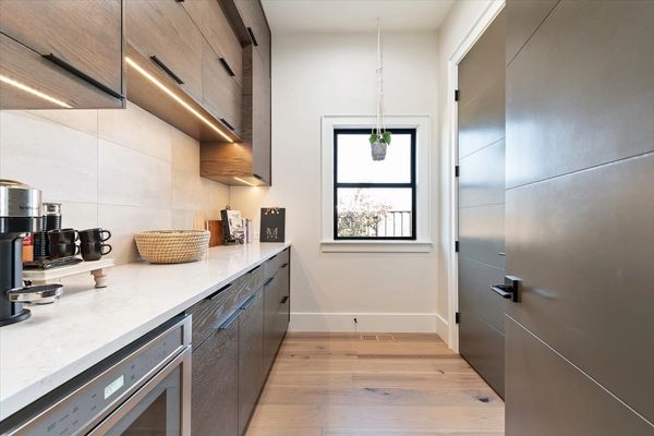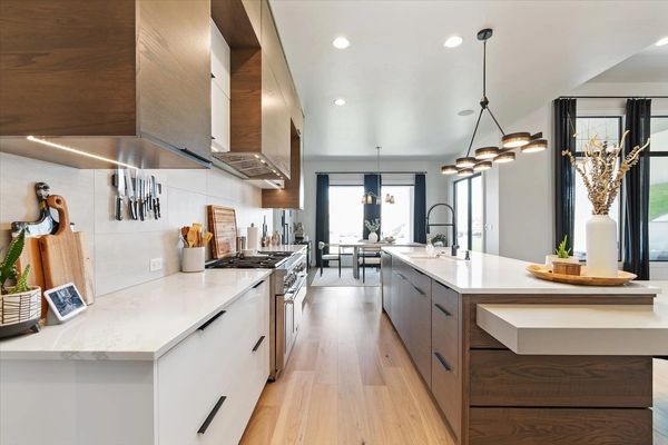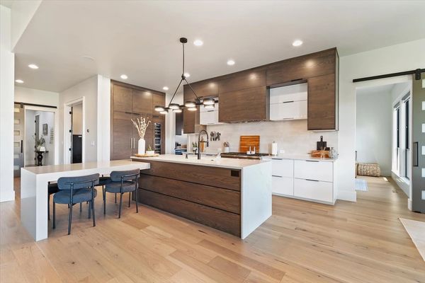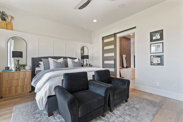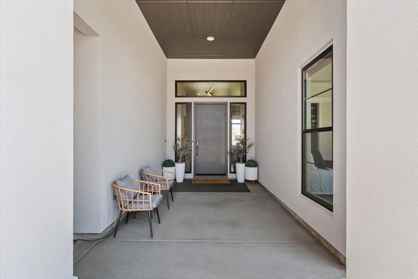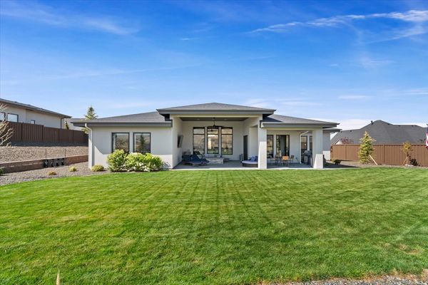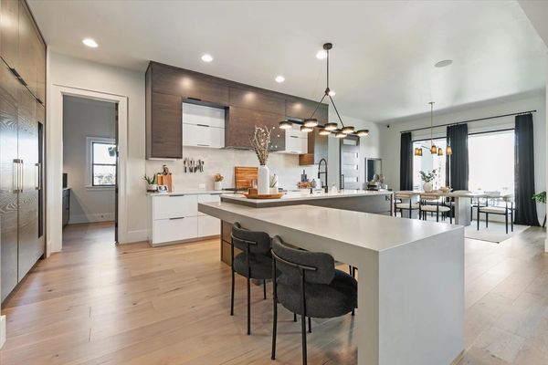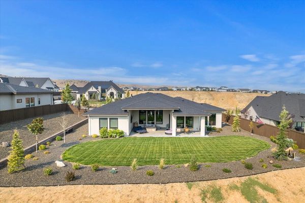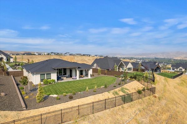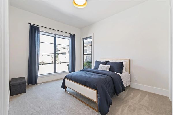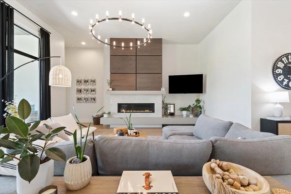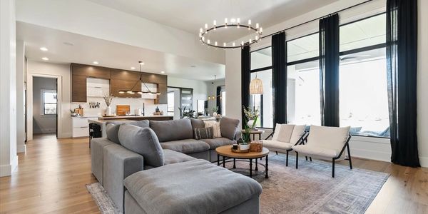 Perched in the scenic foothills of Cartwright Ranch, this contemporary home showcases architectural details that shine with bold, asymmetrical lines, beautifully softened by natural stone and wood accents. With 3 bedrooms, 2.5 baths, an office and a versatile flex room, the thoughtful design complements modern living. The great room, with soaring volume ceilings, frames breathtaking views of the Boise foothills. A gourmet kitchen showcases an oversized island, Thermador appliances and a Butler’s pantry. The primary suite is a retreat with designer feature walls, hardwood flooring and a spa-inspired ensuite complete with heated floors. The climate-controlled garage impresses with epoxy floors, built-in cabinetry, a heater, motorized blinds and a 220V outlet for EV or workshop use. Outside, enjoy a covered patio featuring a fan and fireplace, surrounded by professional landscaping with fruit trees, blueberry bushes, water features and an outdoor shed—all with unobstructed foothill views and no backyard neighbors, ever.